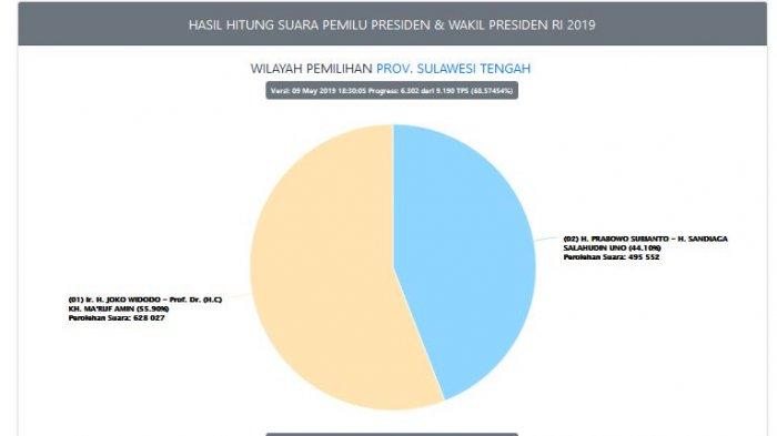 Berdasarkan situs resmi KPU tersebut, hasil real count KPU Pilpres 2019 tercatat sebanyak rangkuman data dari 6.302 TPS di seluruh penjuru Sulawesi Tengah sudah diterima KPU.