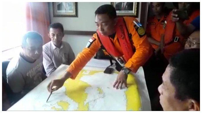 Kepala Kantor Basarnas Palu Basrano, saat memimpin proses pemantauan tanda-tanda keberadaan KM Lintas Timur yang tenggelam di perairan Taliabu, Selasa (18/6/2019).