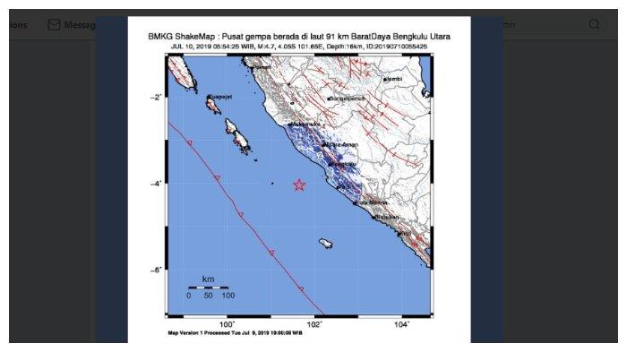 Gempa Magnitudo 4,7 Mengguncang Kota Bengkulu, Rabu 10 Juli 2019 Pagi