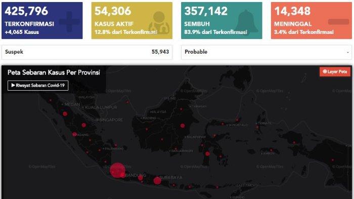 Satuan Tugas Penanganan Covid-19 mencatat, temuan ini menambah jumlah kasus di Indonesia menjadi 425.796 kasus.