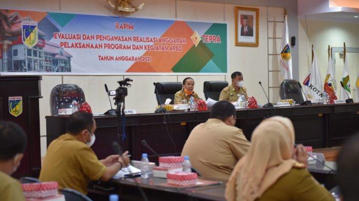 Gubernur Sulawesi Tengah Longki Djanggola memimpin rapat evaluasi dan pengawasan realisasi APBD Provinsi Sulteng TA. 2021 sampai dengan 31 Mei 2021.