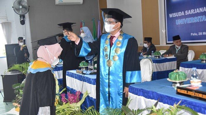 Hal dilakukan saat acara wisuda sarjana ke-51 dan pascasarjana ke-7 di Gedung Rektorat Unismuh Palu Jl Jabal Nur Kelurahan Talise, Kecamatan Mantikulore, Kota Palu, Senin (6/9/2021) siang.