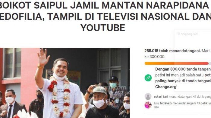 Bermula dari situlah, muncul petisi ajakan untuk memboikot Saipul Jamil dari televisi dan YouTube.