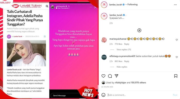 Lantas, netizen pun langsung berlomba-lomba mengomentari dan bertanya-tanya siapa sosok di balik postingan milik Adelia itu.