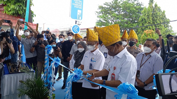 Launching gerai Stasiun Pengisian Kendaraan Listrik Umum (SPKLU) di dapan Kantor PLN UP3 Palu Jl Kartini, Kelurahan Lolu Selatan, Kecamatan Palu Timur