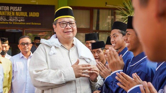 TRIBUNPALU.COM - Menteri Koordinator Bidang Perekonomian Airlangga Hartarto mendapat sambutan meriah saat mengunjungi Pondok Pesantren Nurul Jadid, di Paiton, Probolinggo, Rabu (14/9/2022).