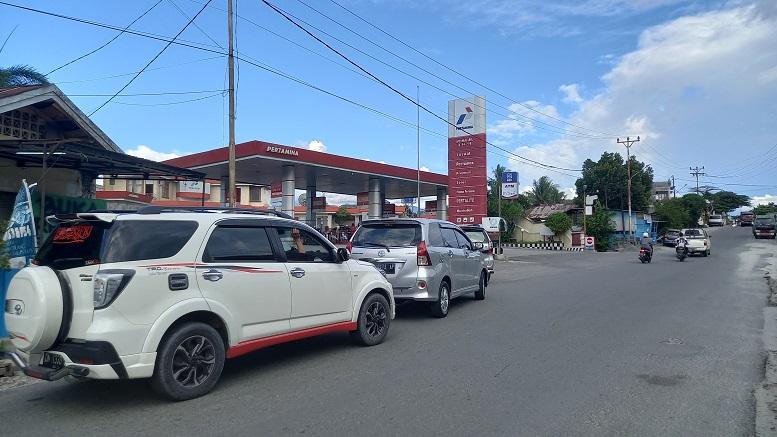 Antrean masih saja mengular seperti di SPBU Jl Maluku, Kelurahan Lolu Selatan, Kecamatan Palu Selatan, Kota Palu.