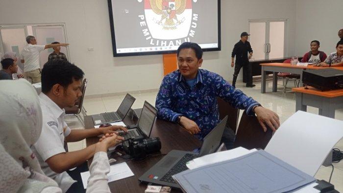 Dengan menggunakan batik bomba berwana bitu terang, Farhat Abbas menyerahkan persyaratan dukungan minimal calon DPD di KPU Provinsi Sulawesi Tengah.