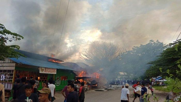 TRIBUNPALU.COM, BANGGAI - Api melahap rumah makan kadompe di tepi pantai Kelurahan Maahas, Kecamatan Luwuk Selatan, Kabupaten Banggai, Sulawesi Tengah, Senin (17/4/2023) pukul 16.00 Wita.