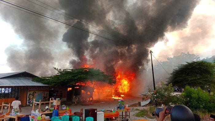 Api begitu cepat melahap 3 rumah makan kadompe di Kelurahan Maahas, Kecamatan Luwuk Selatan, Kabupaten Banggai, Sulawesi Tengah, Senin (17/4/2023) puk