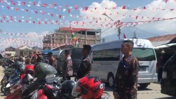 Terlihat saat geladi setiap sisi kawasan Pasar Masomba dilengkapi personel pengamanan berjarak setiap kurang lebih 1 meter.