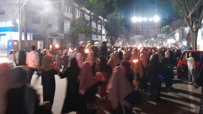 Pantauan TribunPalu.com, pukul 21.45 Wita rombongan Pawai Obor tiba di Jl Hasanuddin, Kota Palu.