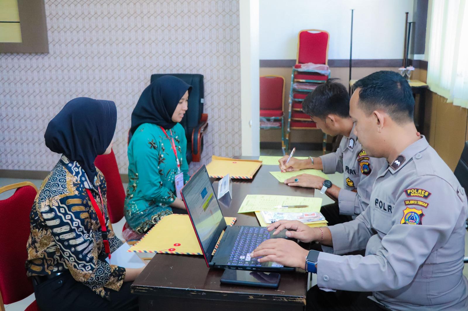 Pantia memeriksa administrasi awal pendaftar penerimaan anggota Polri tahun anggaran 2024, di Markas Polres Banggai.