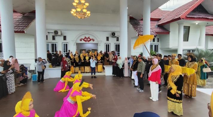 Penjabat Bupati Morowali begitu tiba di Bandara Maleo Morowali disambut upacara adat.