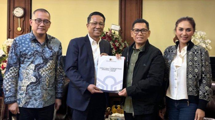Supratman Andi Agtas menyerahkan SK kepengurusan Partai Golkar di Kantor Kementerian Hukum dan Hak Asasi Manusia.