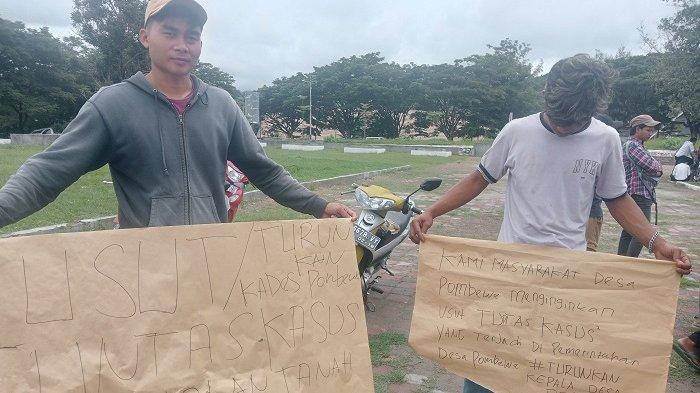 Muhdar, koordinator aksi, menyampaikan bahwa masyarakat Desa Pombewe menuntut agar Kepala Desa Pombewe diberhentikan.
