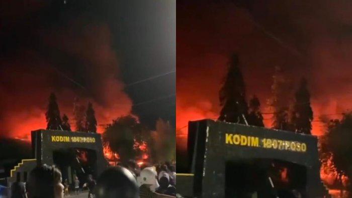 TRIBUNPALU.COM - Kebakaran besar terjadi di Markas Komando Distrik Militer (Kodim) 1307/Poso pada Senin (26/5/2025) malam.